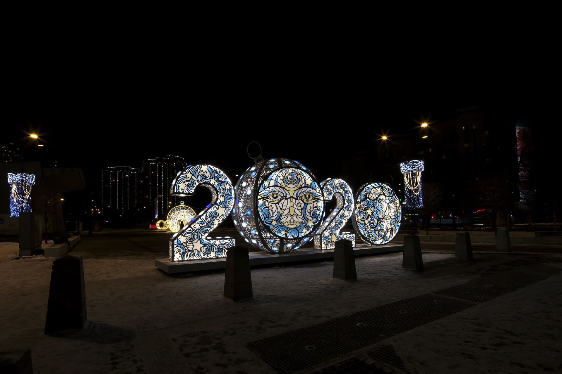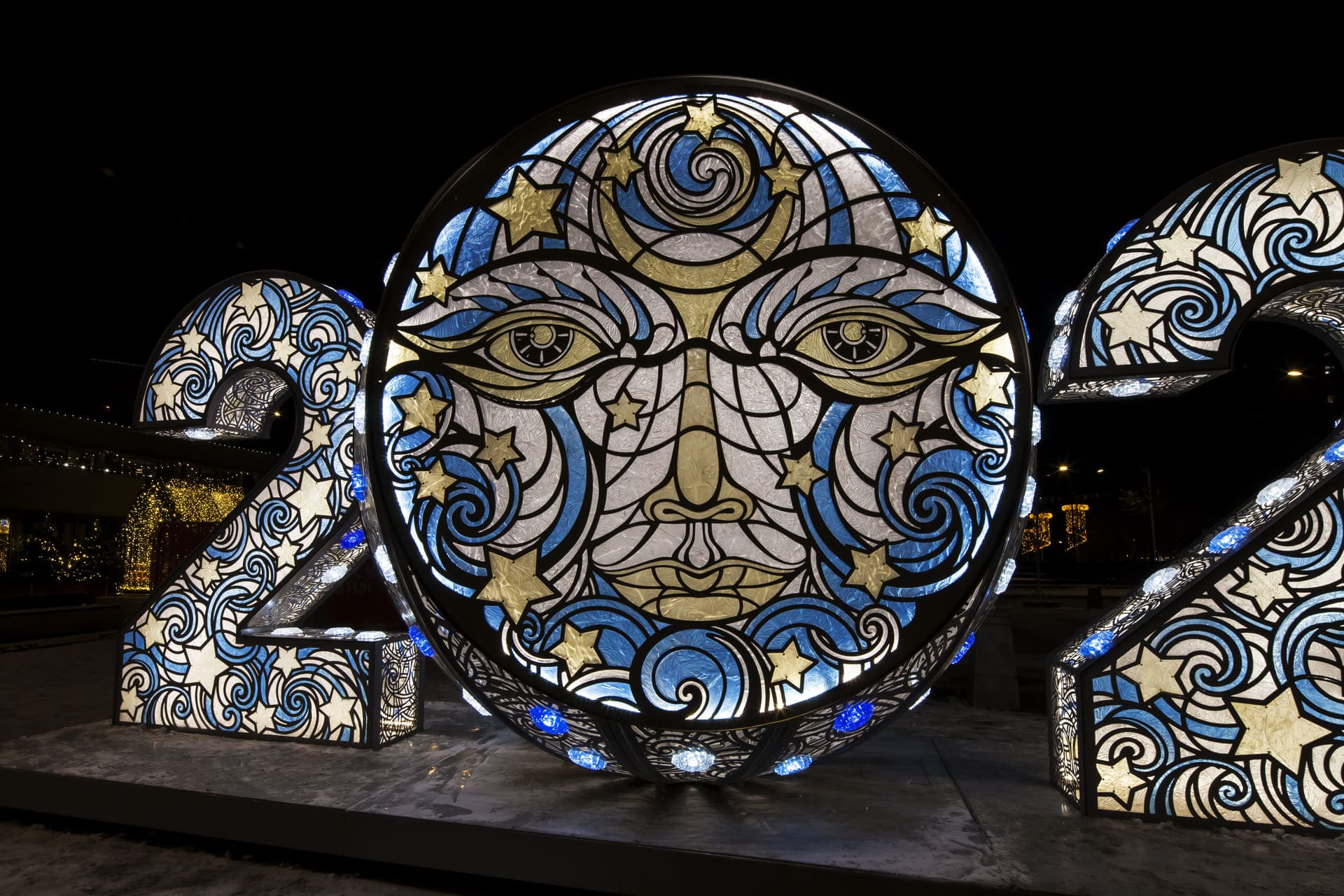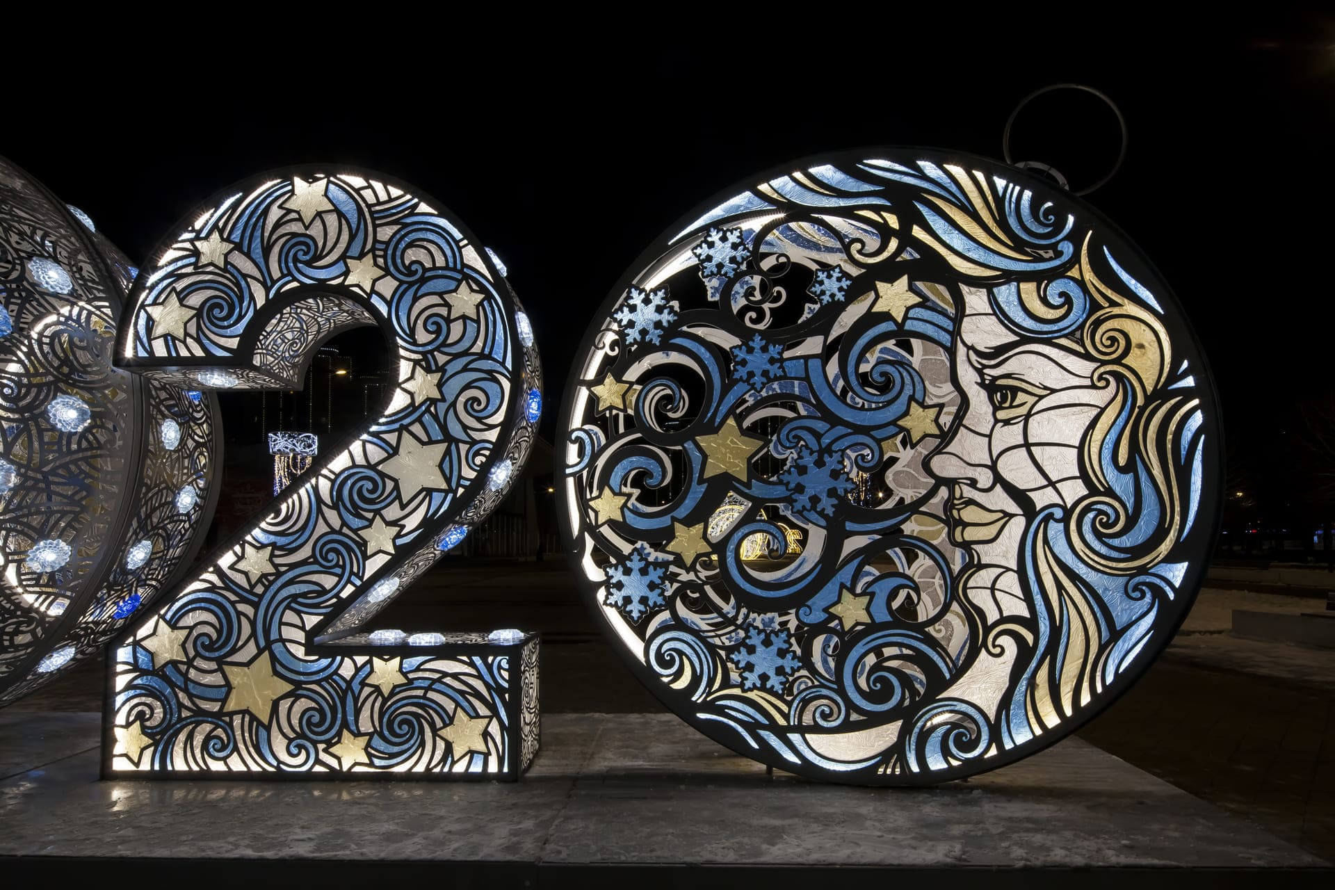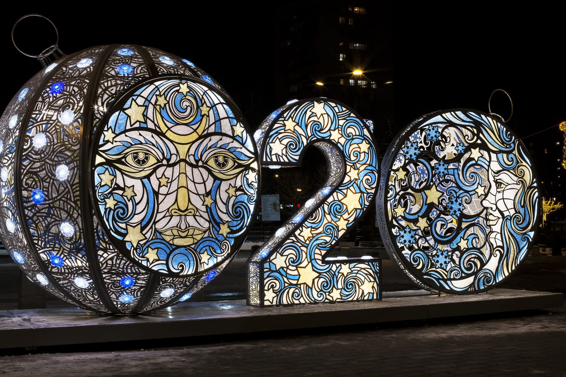 4-х метровая инсталляция с имитацией витража создана и произведена к Новому году 2020.