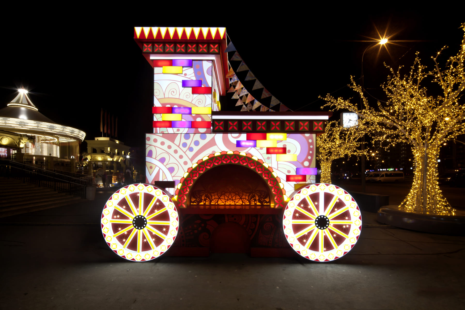Мы разработали, произвели и установили 2 крупных, 4 метровых инсталляции "Русская печь" по всей Москве.